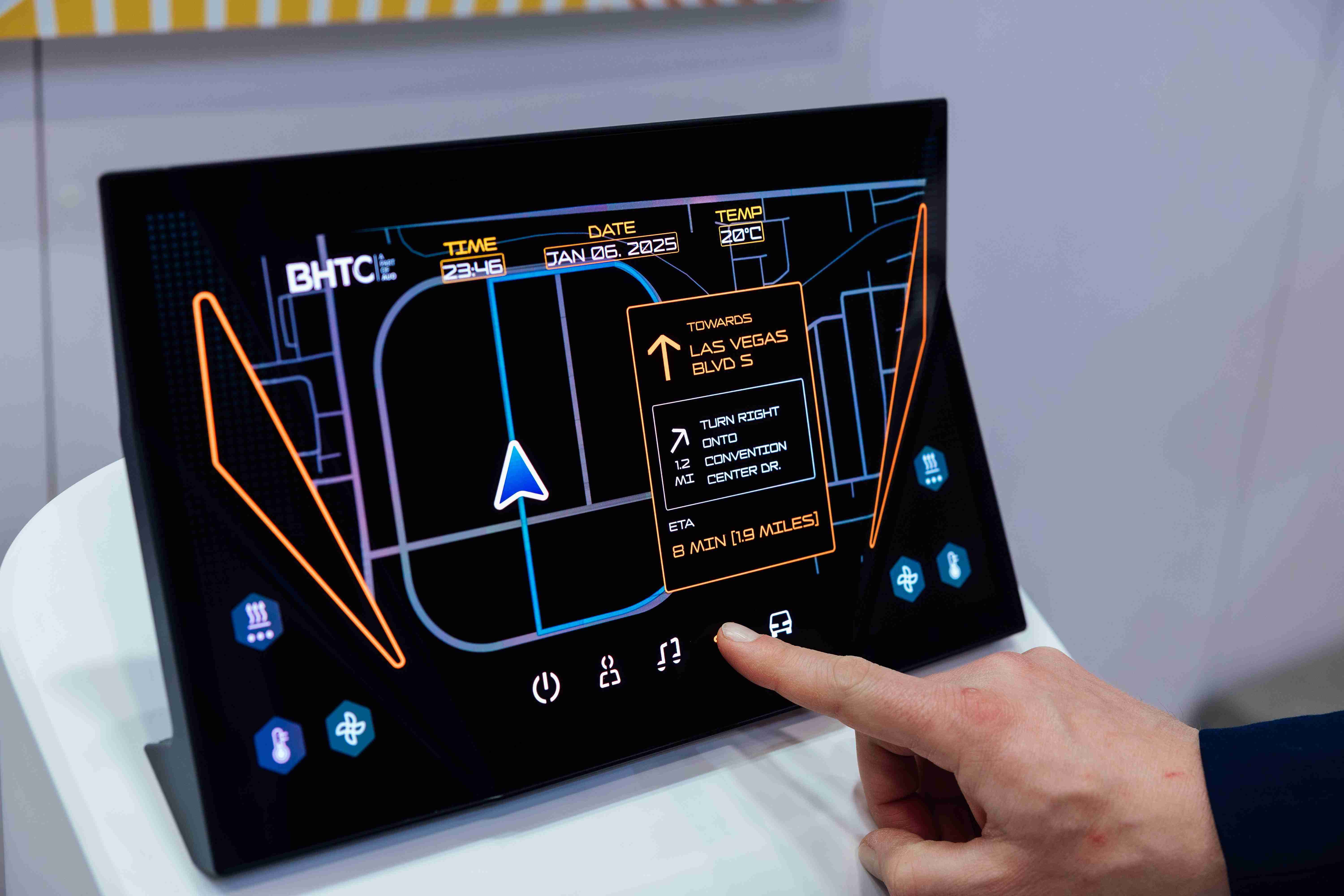 Micro LED可折迭触控显示器(Haptifold Display)结合BHTC多年HMI设计经验,,,,整合中控台和温度控制功能,,,,以优美的曲面和独特的外型助力车内设计美学,,,,在辅以触控回馈下,,,,为驾驶带来更直觉的使用体验。。。