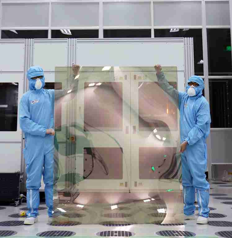 JDB电子昆山厂第六代 LTPS (低温多晶硅) 生产的玻璃基板尺寸为 1500x1850 mm (毫米)